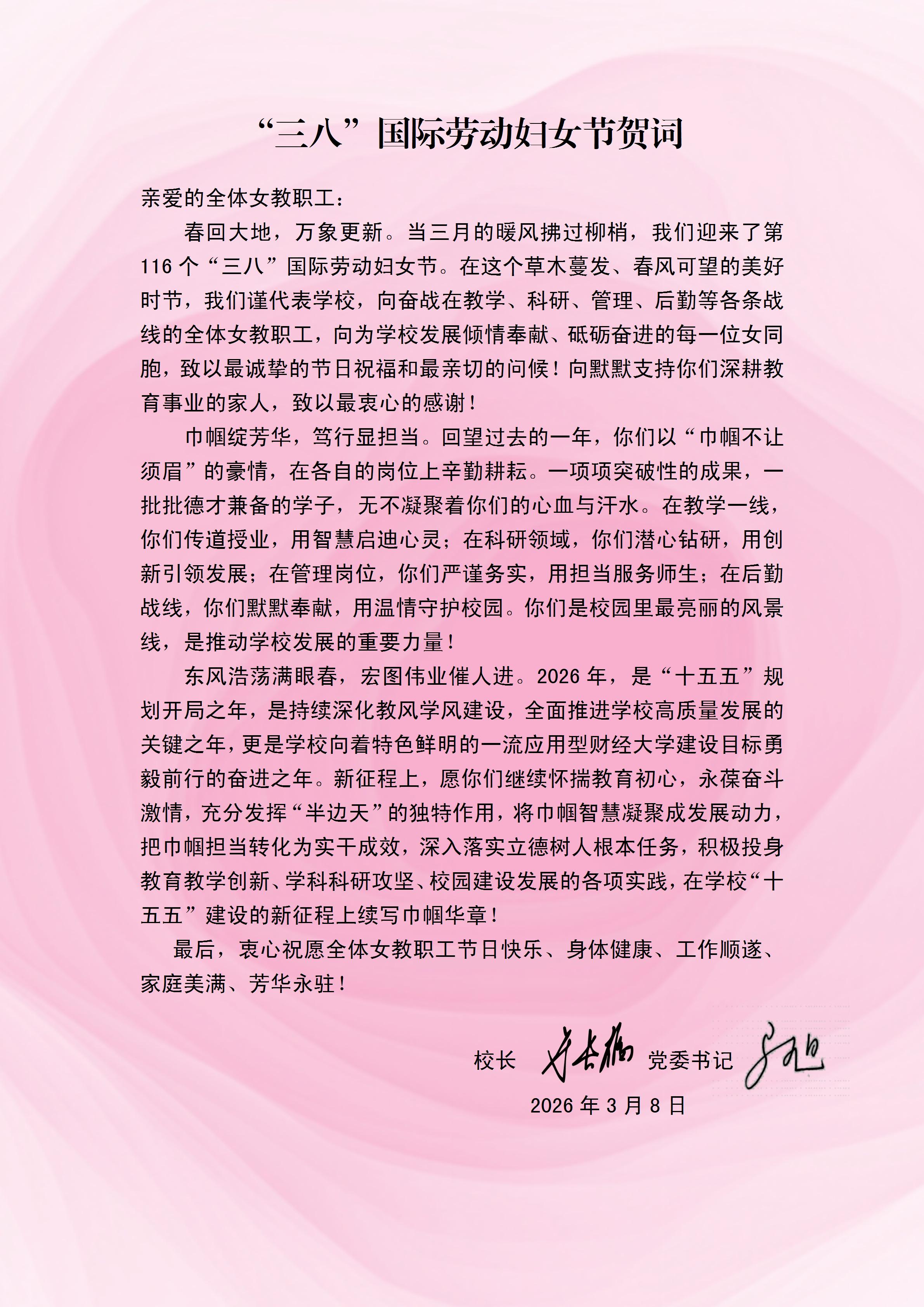 "三八“国际劳动妇女节贺词