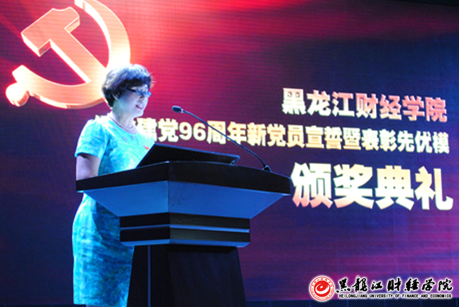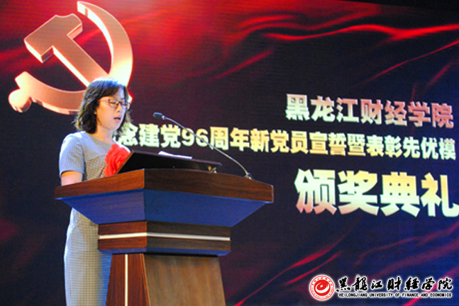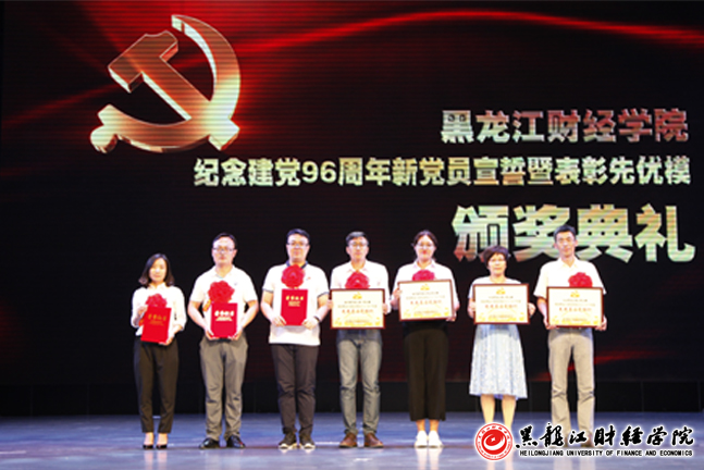 6月28日中午,黑龙江财经学院纪念建党96周年新党员宣誓暨表彰先优模颁奖典礼在音乐厅隆重举行。党委书记修朋月及党委委员、纪委委员出席典礼,全体教工党员、学生党员、入党积极分子代表,先进基层党组织代表、优秀共产党员、模范党务工作者参加了典礼。典礼由党委副书记李怡主持。