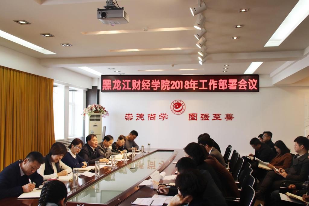 3月28日上午,黑龙江财经学院在主楼十楼第一会议室召开2018年工作部署会议,学院领导、全院中层干部等四十余人参加了此次会议。院长作了重要讲话,会议由副院长于长福主持。