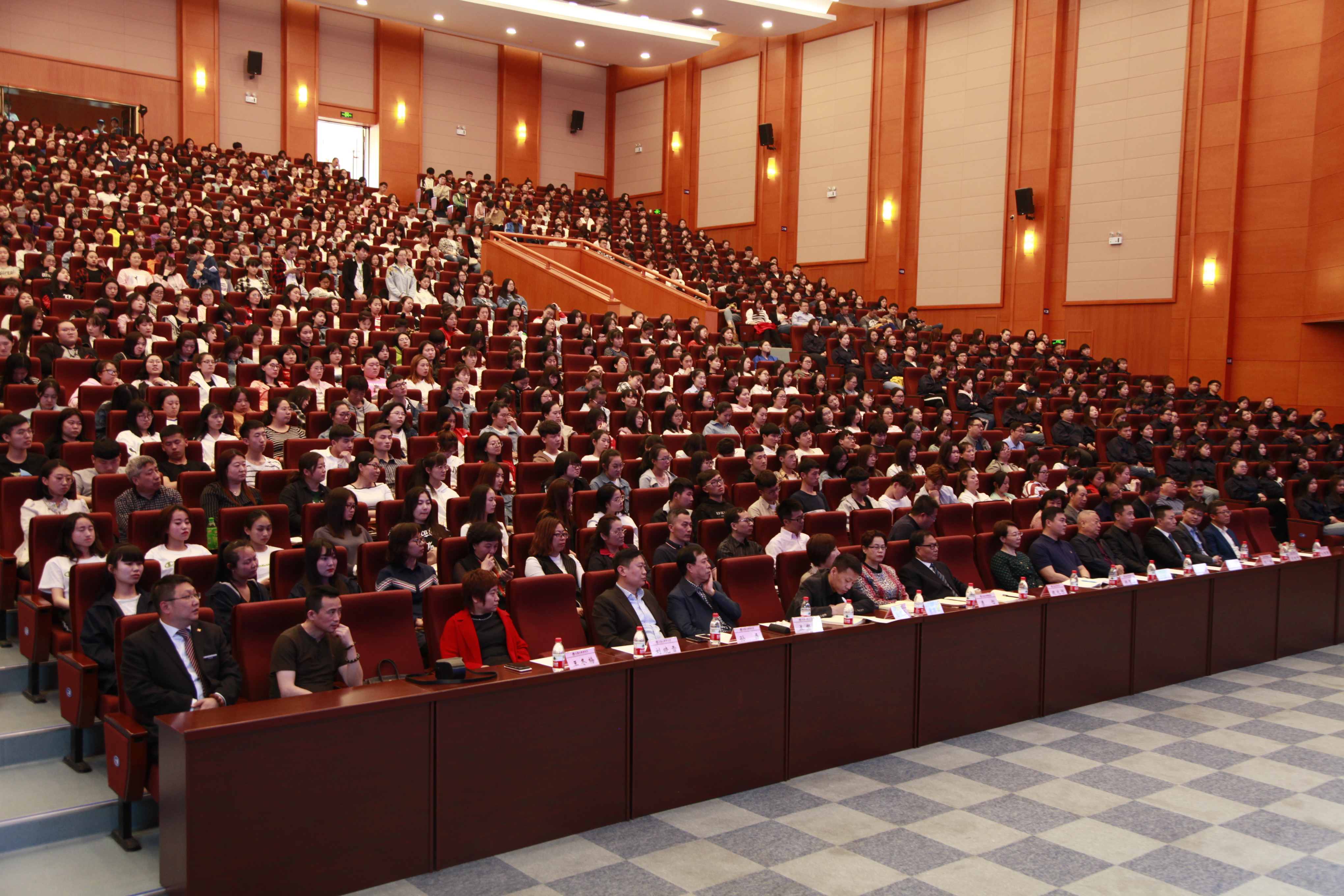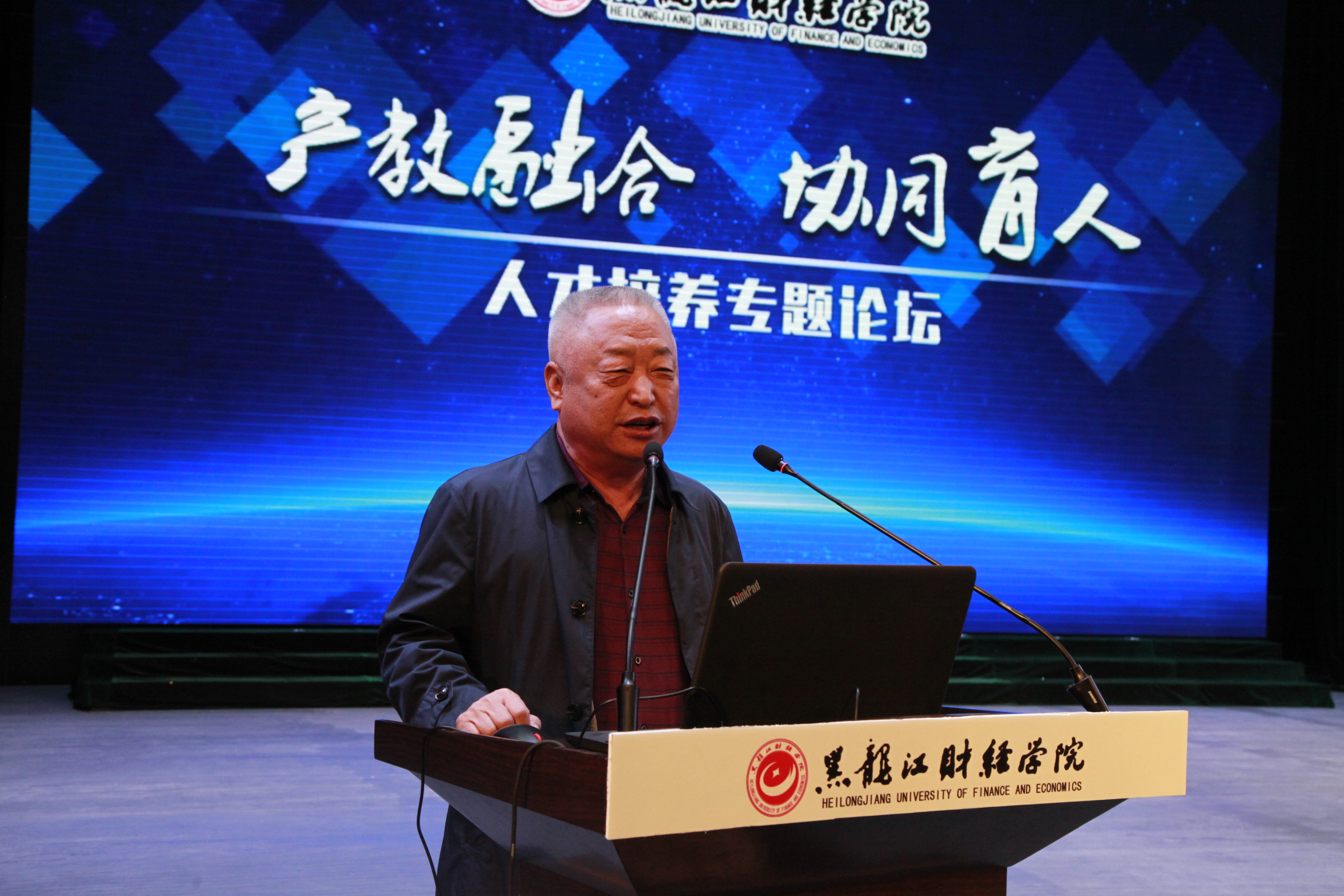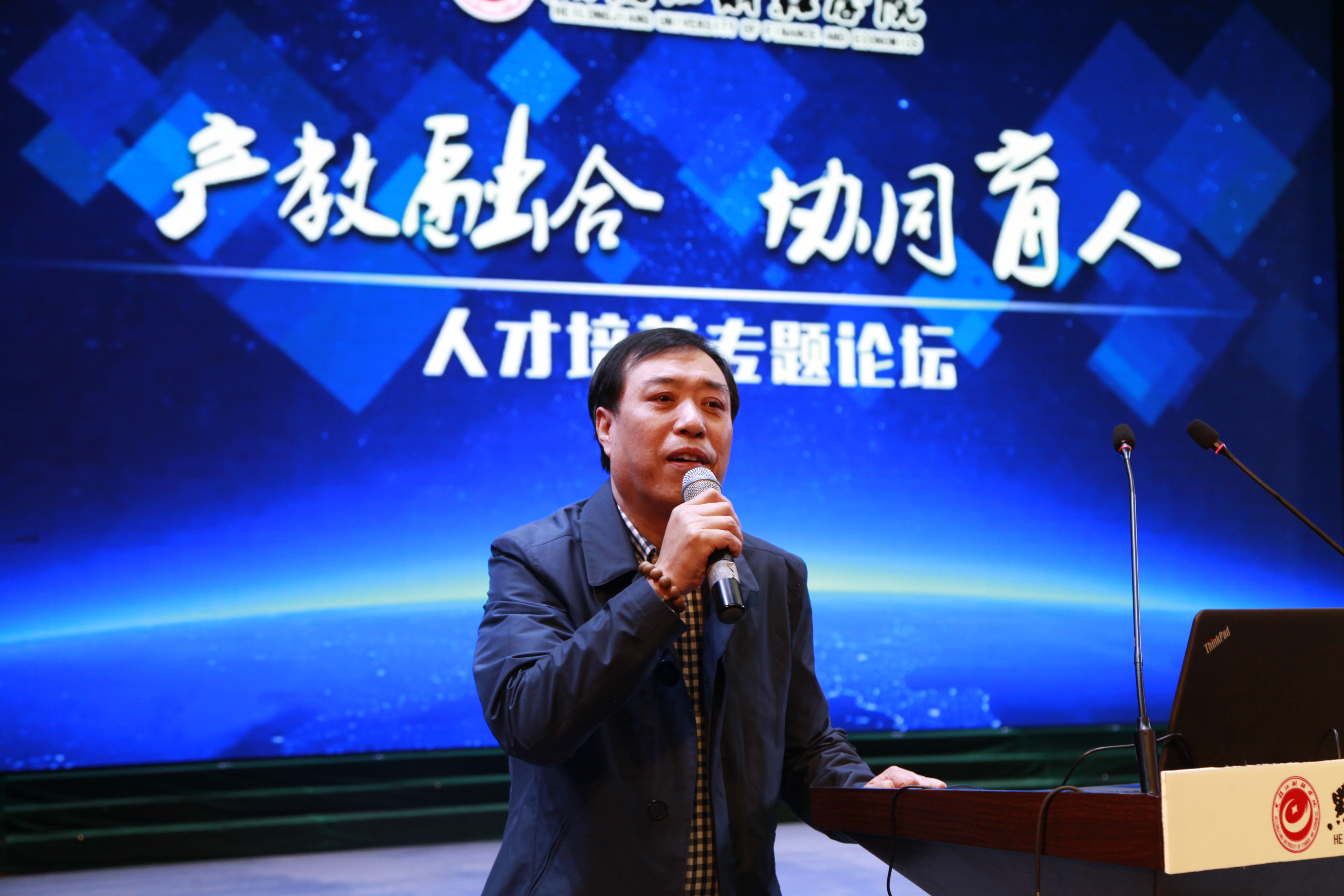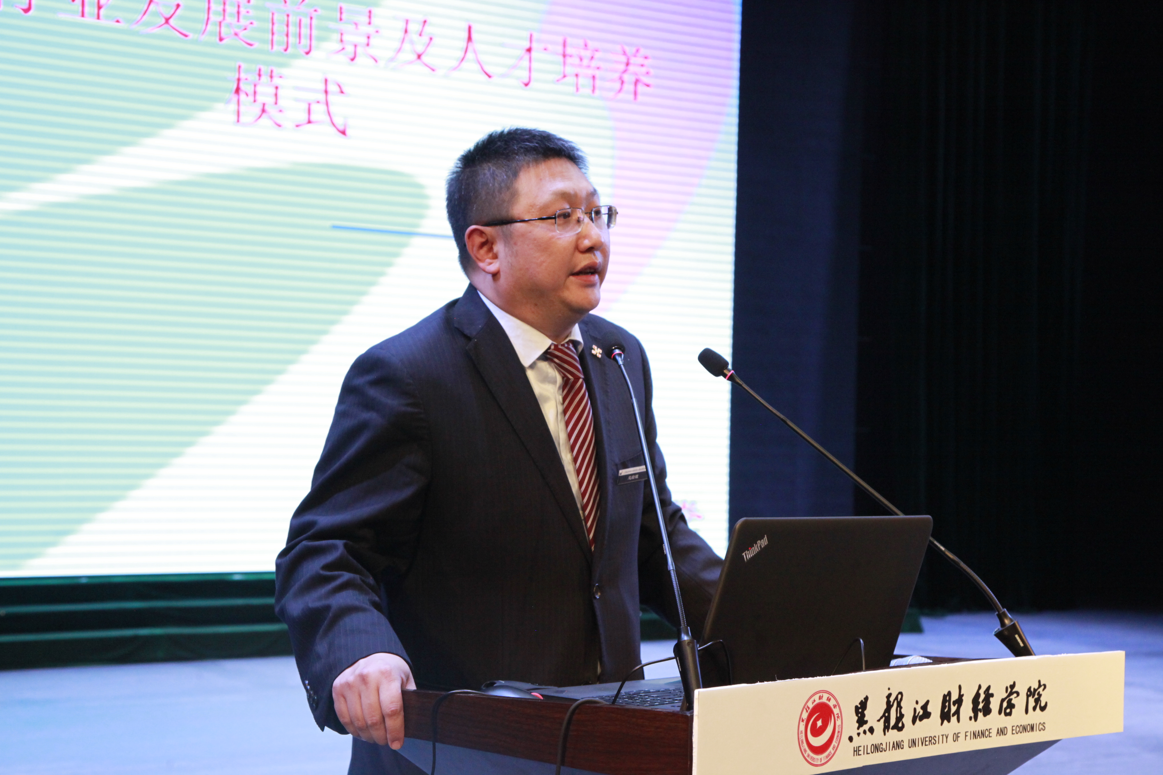 为深入贯彻落实国家相关文件精神,探索产教融合、协同育人的人才培养模式,加快推进我院产教融合、协同育人进程,4月25日下午,黑龙江财经学院“产教融合 协同育人”人才培养专题论坛在音乐厅隆重举行,邀请哈尔滨三五味业集团董事长王军、全国十佳律师孟繁旭、哈尔滨焦视眼科医院董事长焦宏伟、黑龙江省标识行业协会创始人孙磊、中意人寿黑龙江分公司高级总监郭杨、江海证券松北营业部刘晓雪共六位知名企业家来院作报告,院长魏兆胜等学院领导,各单位党政负责人、教师及1000余名学生代表参加了论坛。论坛由毕业生就业指导中心主任郭海峰主持。
