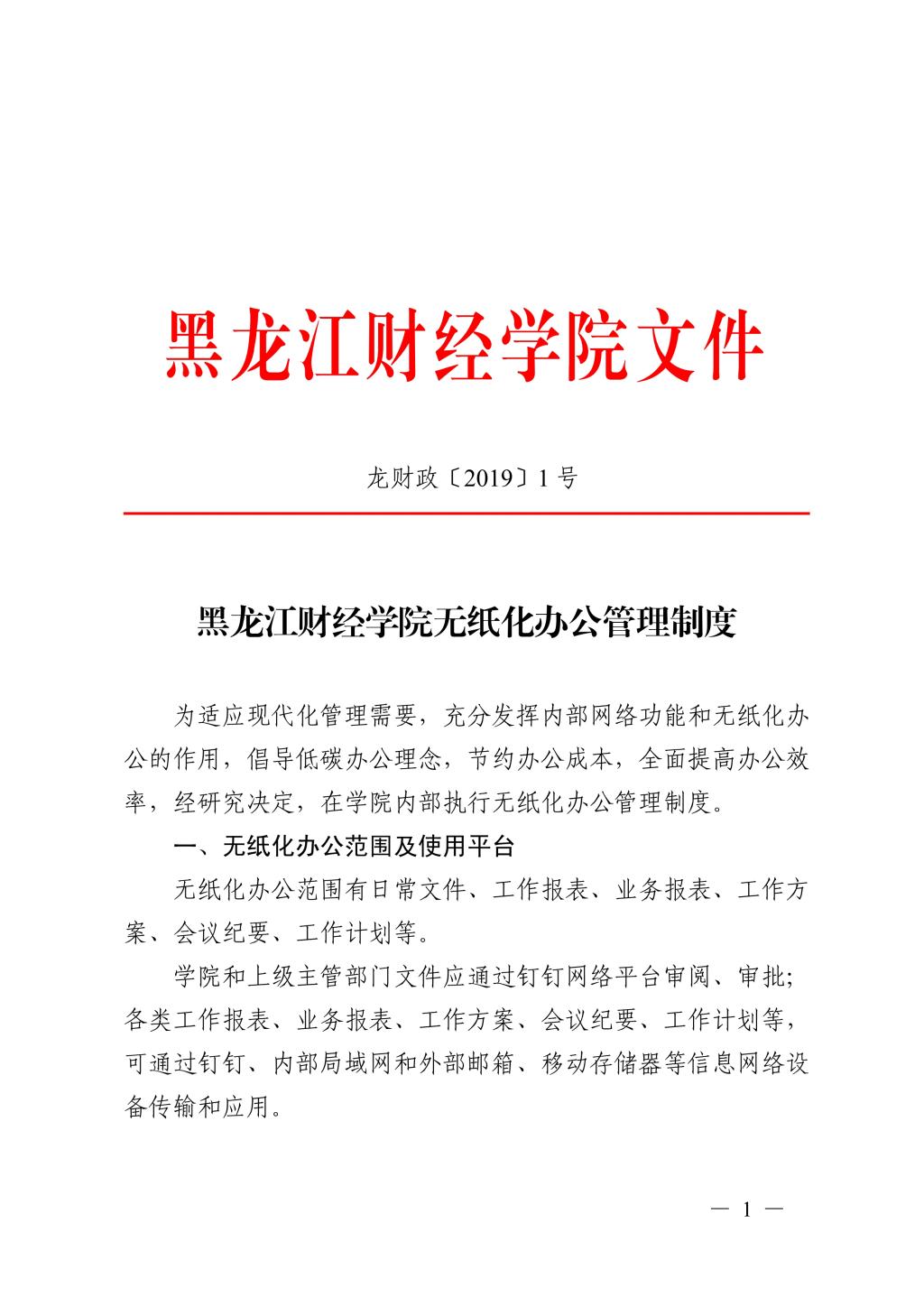 黑龙江财经学院无纸化办公管理制度