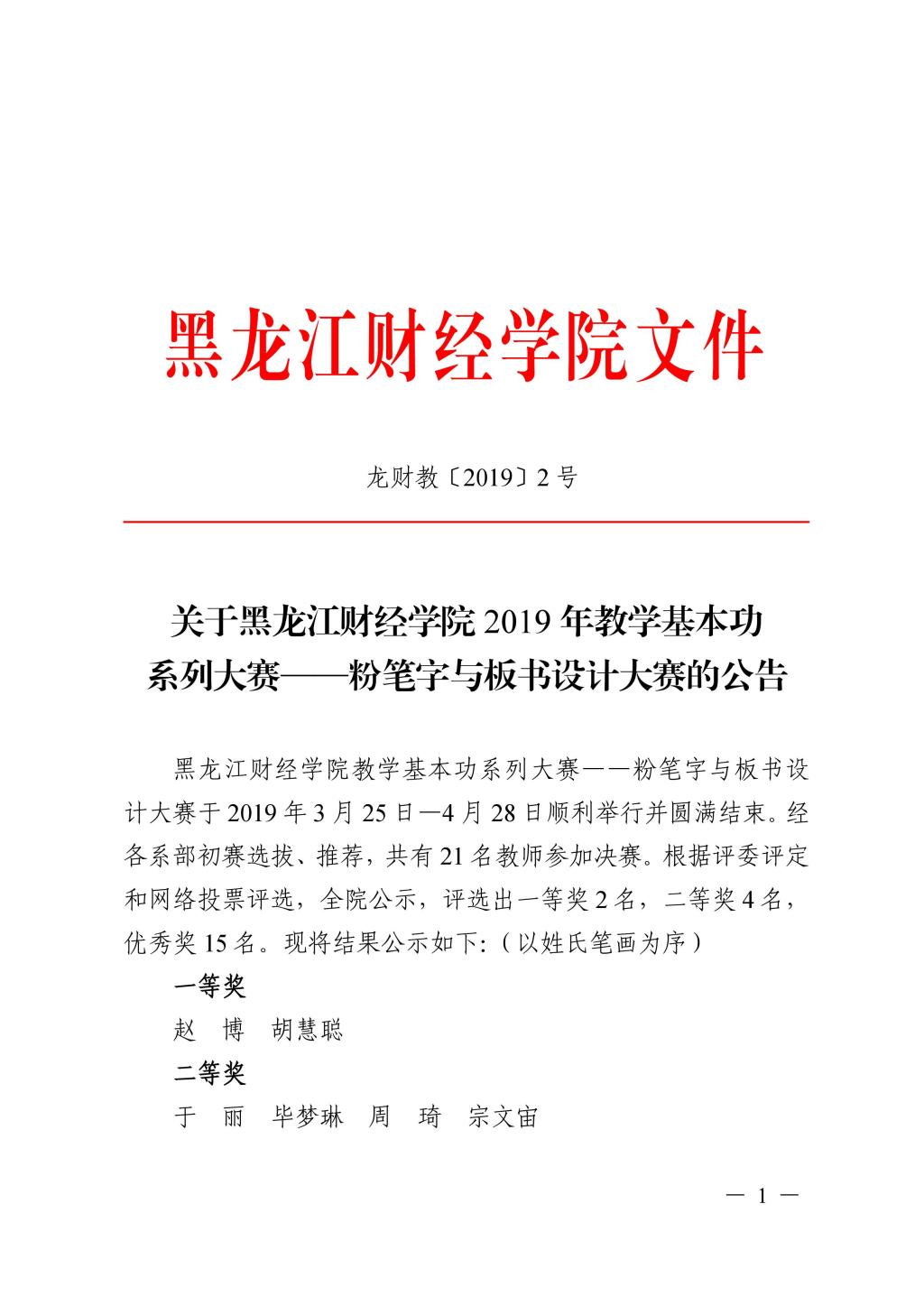 关于黑龙江财经学院2019年教学基本功系列大赛---粉笔字与板书设计大赛的公告