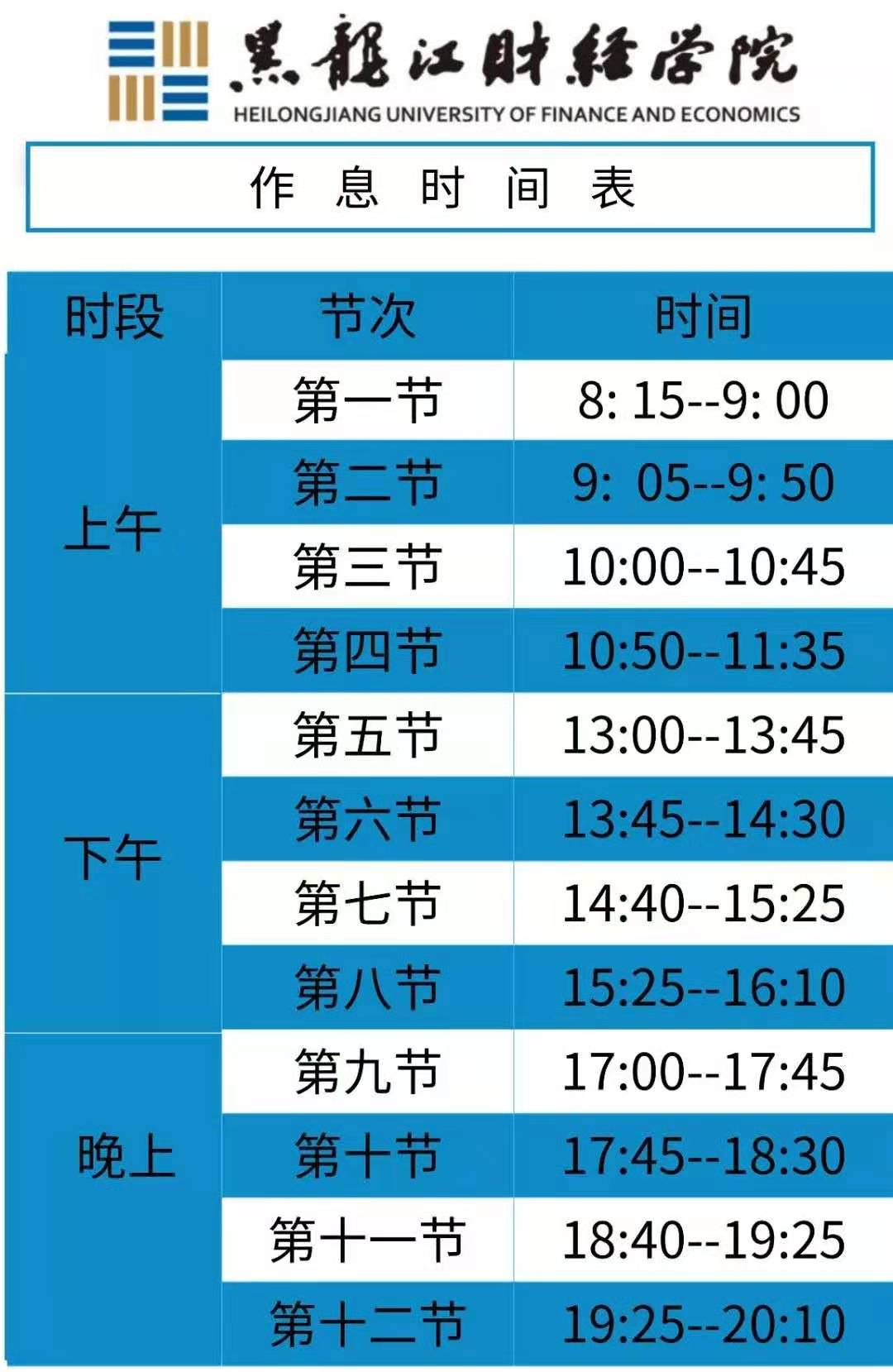 现发布《黑龙江财经学院作息时间表》,请各单位通知到位,下学期遵照执行。