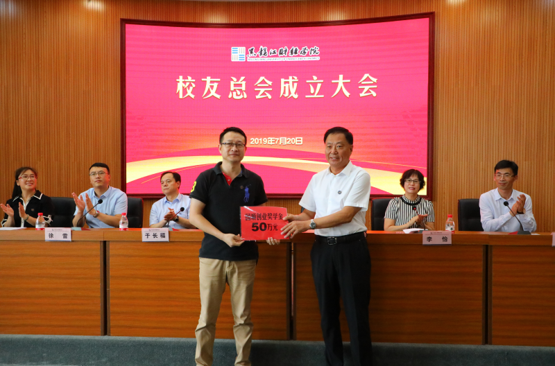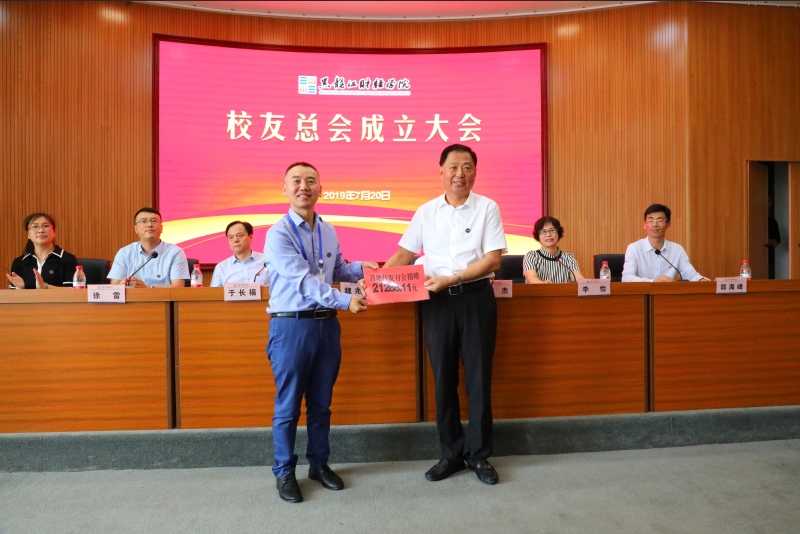 院长魏兆胜代表学院接受来自12个校友分会的捐赠和国顺创业奖学金。党委书记裘杰为校友总会常务理事代表颁发聘书。常务副院长于长福宣读了《黑龙江财经学院校友总会组织机构名单》并宣布了校友会会长、副会长、秘书长等人选。毕业生就业指导中心主任郭海峰、校友办公室黄金芳宣读了《黑龙江财经学院校友会总章程》,介绍了校友会建设发展情况。