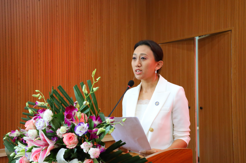 中指控股有限公司总部总经理,北京校友分会会长2000级市场营销专业高云代表校友发言,她表示,校友是母校的名片,回报母校是每一个校友的责任。我们将以龙财校训作为自己的座右铭,以更大的业绩回报母校,为母校争光添彩。
