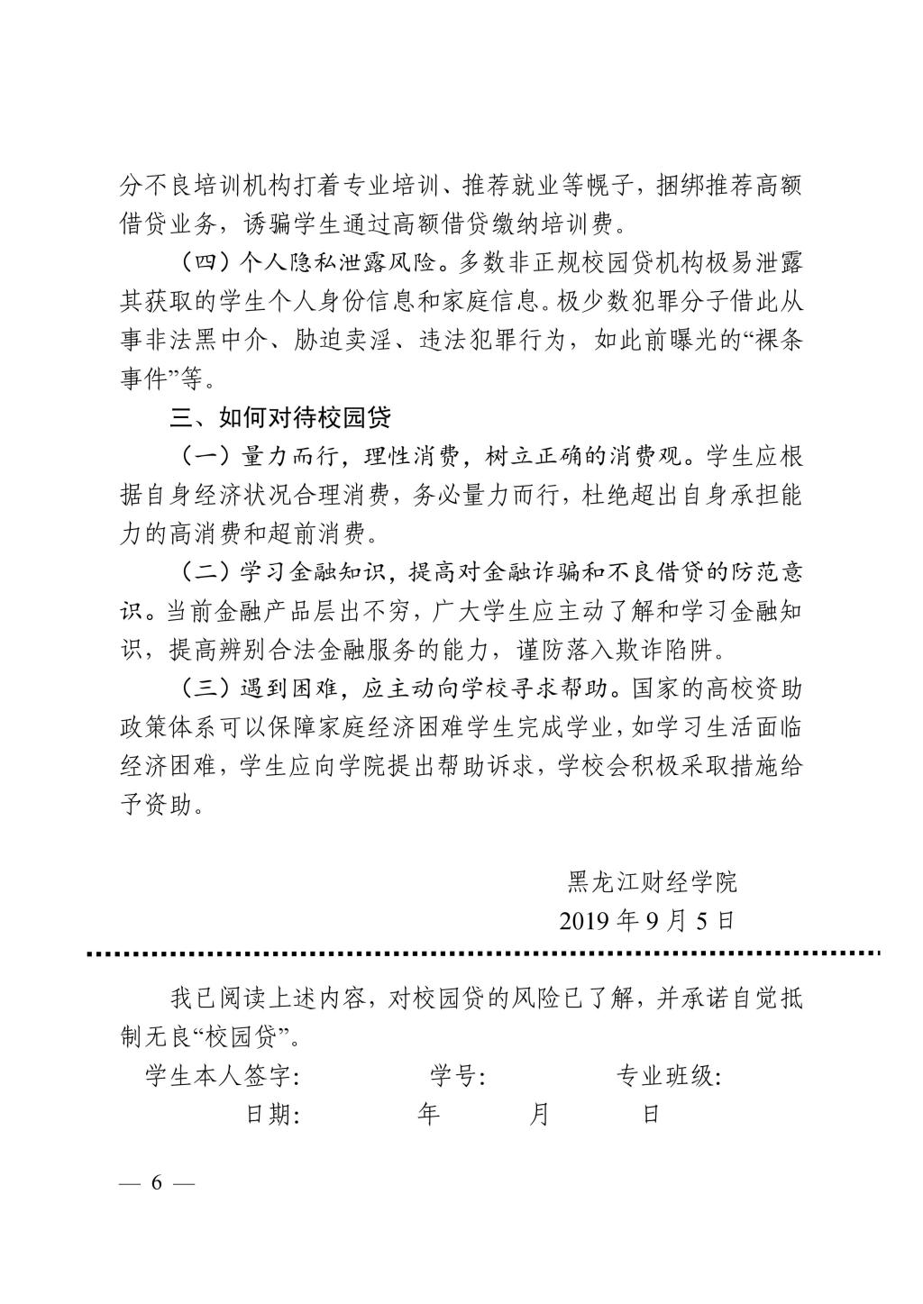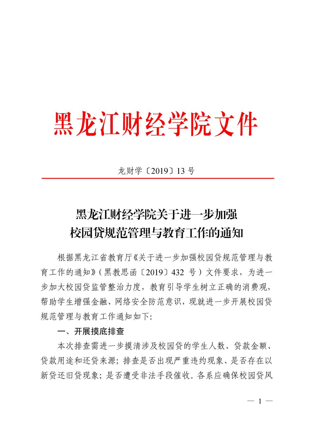 黑龙江财经学院关于进一步加强校园贷规范管理与教育工作的通知