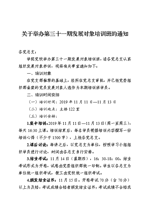关于举办第三十一期发展对象培训班的通知
