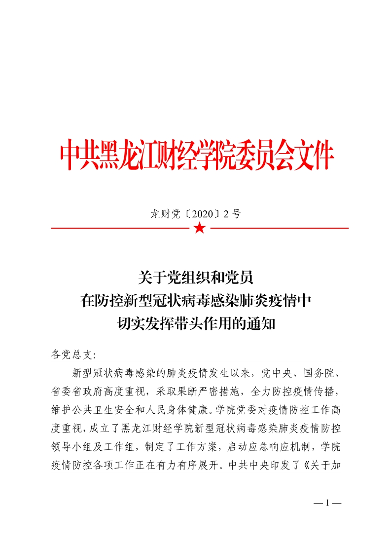 关于党组织和党员在防控新型冠状病毒感染肺炎疫情中切实发挥带头作用的通知