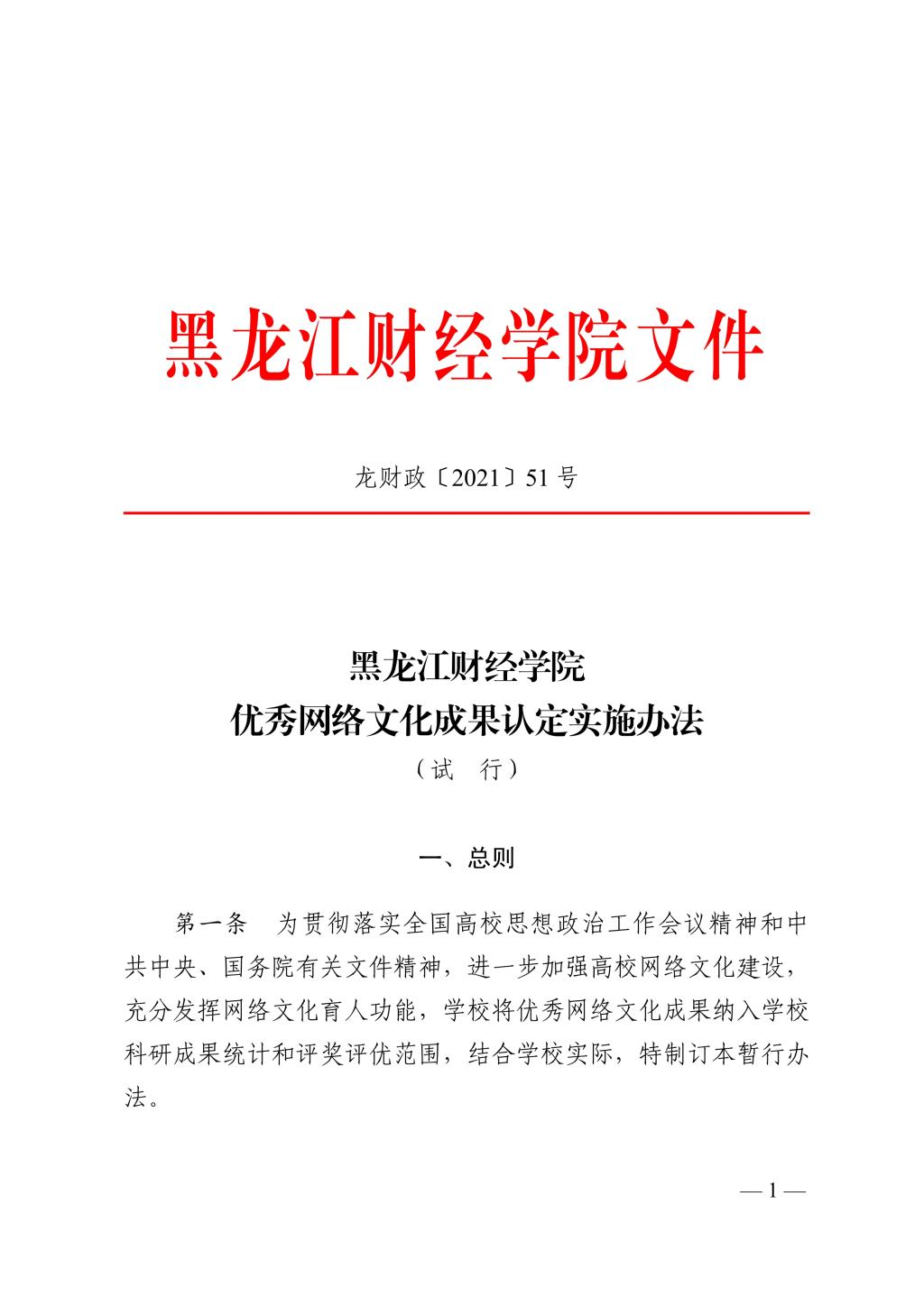 黑龙江财经学院优秀网络文化成果认定实施办法(试行)