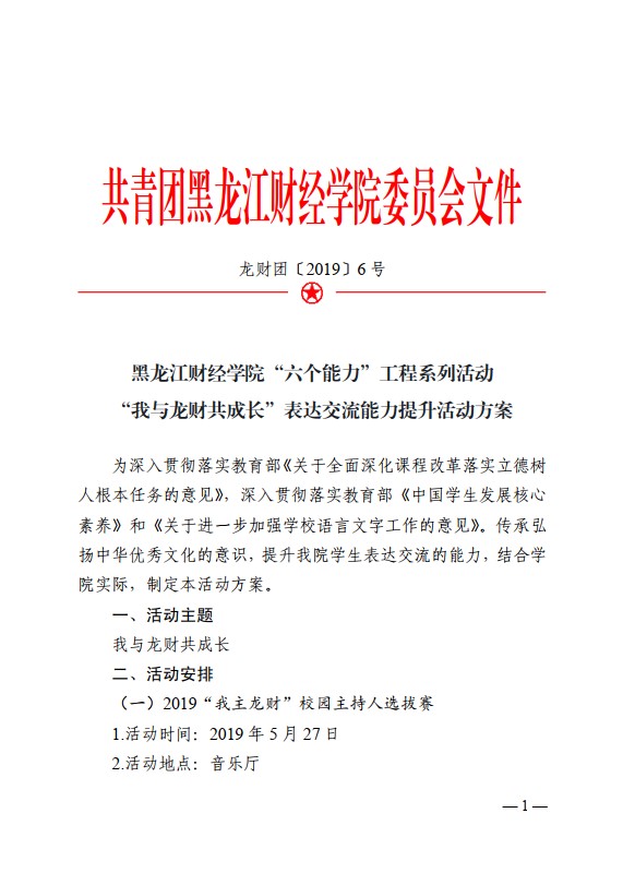 黑龙江财经学院“六个能力”工程系列活动“我与龙财共成长”表达交流能力提升活动方案