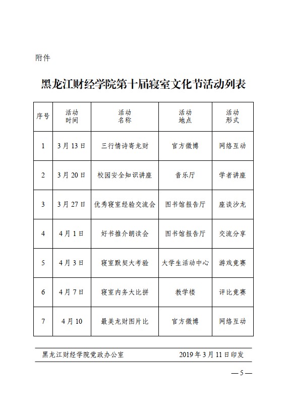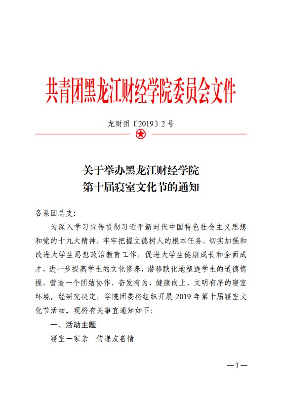 关于举办黑龙江财经学院第十届寝室文化节的通知