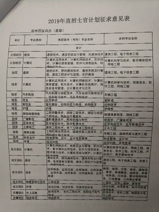 附件:1. 2019年直招士官计划征求意见表