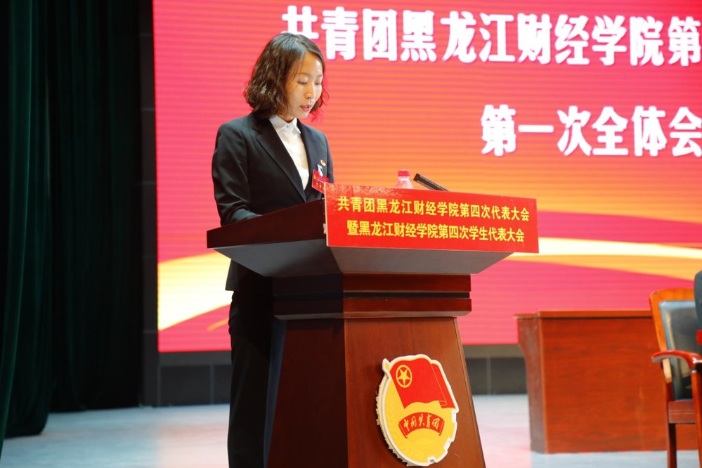 会上,李晓璇代表共青团黑龙江财经学院第三届委员会作《喜迎二十大,永远跟党走,奋进新征程,团结带领龙财团员青年为建设特色鲜明的民办应用型财经大学贡献青春力量》工作报告,报告总结了近五年来学校共青团改革的新作为,指出未来五年学校共青团将以服务学生成长成才为出发点和落脚点,以改革创新精神推进团的工作和建设,全面履行组织青年、引导青年、服务青年、维护青年合法权益的职能,团结带领全校团员青年为建设特色鲜明的一流民办应用型财经大学贡献青春力量。校学生会主席彭馨瑶代表黑龙江财经学院第三届学生委员会作《喜迎二十大,青春心向党,追梦新时代,为我校建设特色鲜明的民办应用型财经大学贡献青春力量》工作报告,报告回顾了第三次学生代表大会召开以来,学生会在学生思想引领、文化活动、组织建设、维护权益、自我管理等方面取得的成绩,并对今后学生会工作提出三大举措。