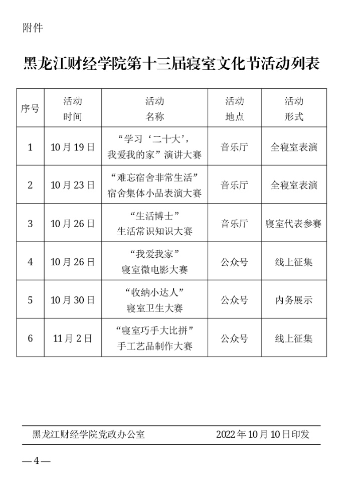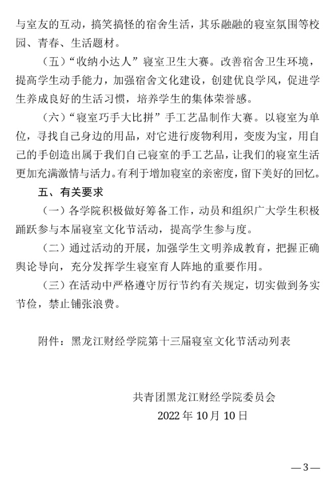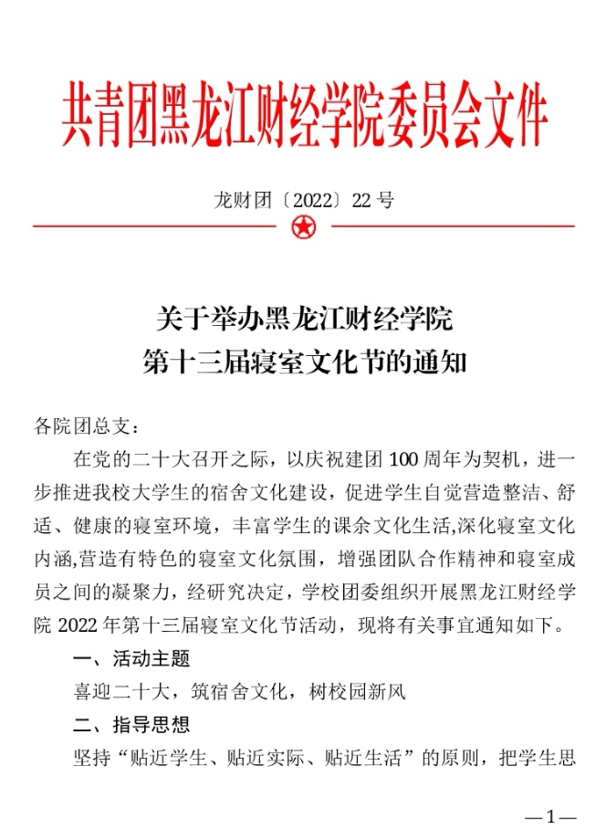黑龙江财经学院第十三届寝室文化节通知