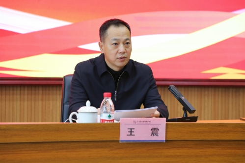 王震紧密结合教育系统实际,从党的二十大的主题、主要成果,过去5年的工作和新时代10年的伟大变革,马克思主义中国化时代化,中国式现代化,全面建设社会主义现代化国家的目标任务,坚持党的全面领导和全面从严治党,应对风险挑战,教育、科技、人才工作的部署等8个方面,对党的二十大提出的新思想新论断、作出的新部署新要求,作了全面系统阐释解读。他指出,党的二十大是一次高举旗帜、凝聚力量、团结奋进的大会,取得了重大的政治成果、理论成果、实践成果。习近平同志全票当选中共中央总书记,充分反映了全党全国各族人民对习近平总书记的衷心拥护、信赖和爱戴,反映了习近平总书记在全党全军全国各族人民心中的崇高威望,反映了亿万人民紧跟党的核心、人民领袖开创更加美好未来的共同心声和坚定决心。广大党员干部和师生要深刻领会党的二十大的重大意义和精神实质,推动党的二十大精神进课堂、进教材、进头脑,自觉做“两个确立”的坚决拥护者、“两个维护”的忠实践行者。他强调,要深刻把握“教育是国之大计、党之大计”这一重大使命、“立德树人”这一根本任务、“坚持以人民为中心发展教育”这一价值追求、“加快建设高质量教育体系”这一重要部署,把党的二十大精神贯彻落实到教育改革发展各方面全过程,自觉用习近平新时代中国特色社会主义思想铸魂育人,引领广大师生在全面学习、全面把握、全面落实上下功夫,切实做到学思用贯通,知信行统一。他指出,要紧紧围绕《中共中央关于认真学习宣传贯彻党的二十大精神的决定》提出的“七个聚焦”,把握导向、突出重点、讲求实效,系统学习培训,广泛宣讲巡讲,融入教育教学,增强感召力、凝聚力、影响力,迅速兴起学习宣传贯彻党的二十大精神的热潮,切实推动习近平新时代中国特色社会主义思想和党的二十大精神在学校落地生根。