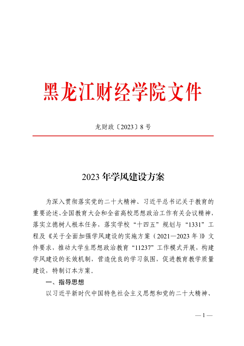 黑龙江财经学院2023年学风建设方案——龙财政〔2023〕8号