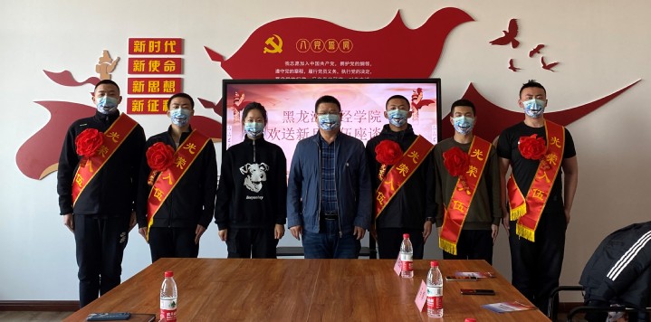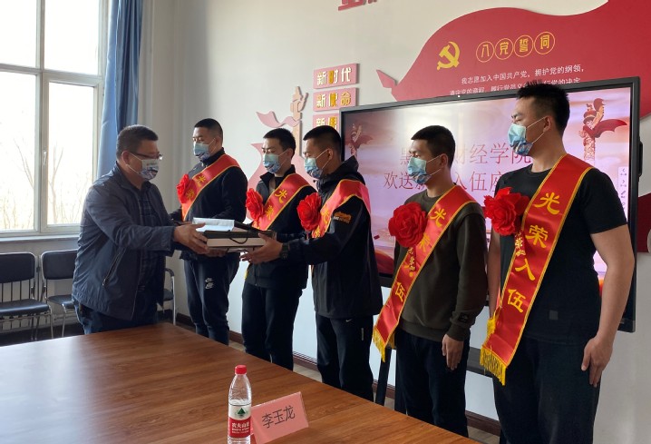 冯玉龙代表学校向应征入伍的8名同学表示热烈祝贺。他指出,长期以来,我校一直传承并发扬拥军报国的光荣传统,一批又一批的热血青年义无反顾地奔赴军营,加强国防建设和军队建设。他向即将入伍的同学们寄予了三点殷切的希望:一是要加强学习,铭记校训,提高政治素质;二是要忠于职守,牢记使命,苦练军事技能;三是要严守纪律,端正作风,安心部队生活。