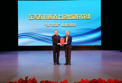 为扎实推进学校“三风”建设系列活动深入开展,教育广大青年学子从先进人物中汲取春春奋进力量,引导教师切实扛起为党育人、为国育才的时代重任,4月12日,我校邀请“时代楷模”、全国道德模范、全国“最美奋斗者”、全国高校辅导员年度人物、大连海事大学马克思主义学院博士生导师曲建武教授在音乐厅作题为《在青春的赛道上跑出最好成绩》的讲座。党委书记裘杰出席讲座并为曲建武教授颁发客座教授聘书,党委副书记李怡主持讲座。