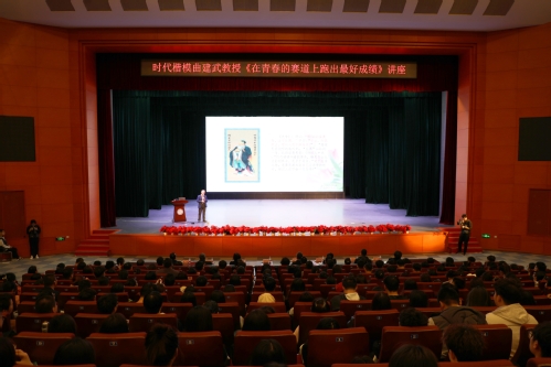 为扎实推进学校“三风”建设系列活动深入开展,教育广大青年学子从先进人物中汲取春春奋进力量,引导教师切实扛起为党育人、为国育才的时代重任,4月12日,我校邀请“时代楷模”、全国道德模范、全国“最美奋斗者”、全国高校辅导员年度人物、大连海事大学马克思主义学院博士生导师曲建武教授在音乐厅作题为《在青春的赛道上跑出最好成绩》的讲座。党委书记裘杰出席讲座并为曲建武教授颁发客座教授聘书,党委副书记李怡主持讲座。