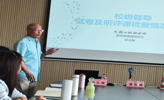 刘世鹏副院长首先概括了本学期督导工作安排,包括新开课教师课前演练工作、教案检查工作、课程思政教学(听课)评价工作、教学督导信息反馈工作、实践教学环节督导检查工作以及教研室活动专项督查工作等多种形式的督导工作内容;其次,将经济学院“督”与“导”的情况进行总结,通过对教材、大纲、教案、教学设计、记分册、试卷、论文、实践教学等方面的监督和督促,在期末试卷、论文指导、大纲撰写、教学设计、思政融入、教学技能、实践教学等方面加强指导和引导,实现“督”与“导”的有机结合,对本学期获得第三届教学创新大赛获得一等奖的教师团队给予肯定和表扬,要求教师要明确自身的使命与担当,鼓励教师扎实教学基本功,不断进行教学创新实践。
