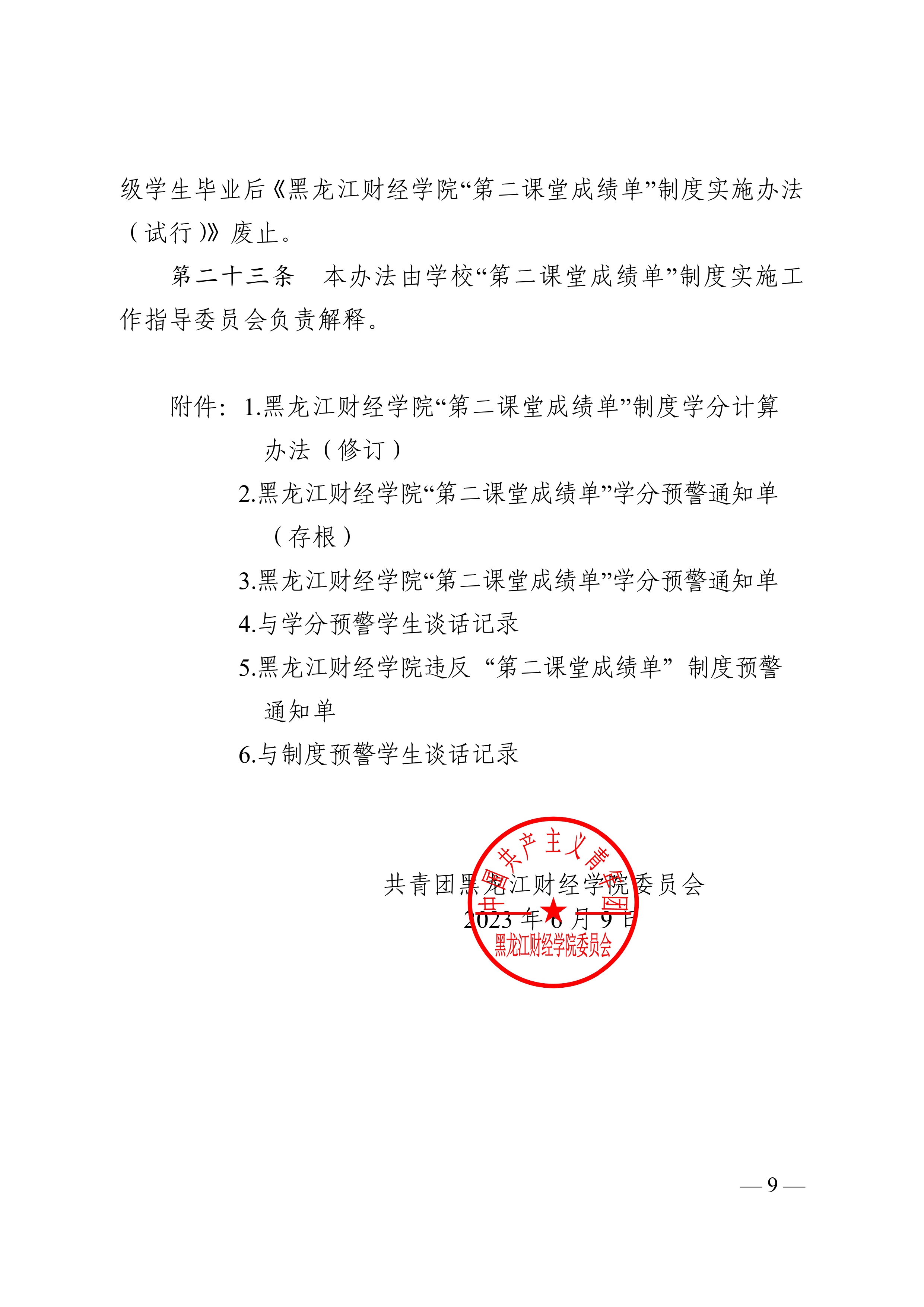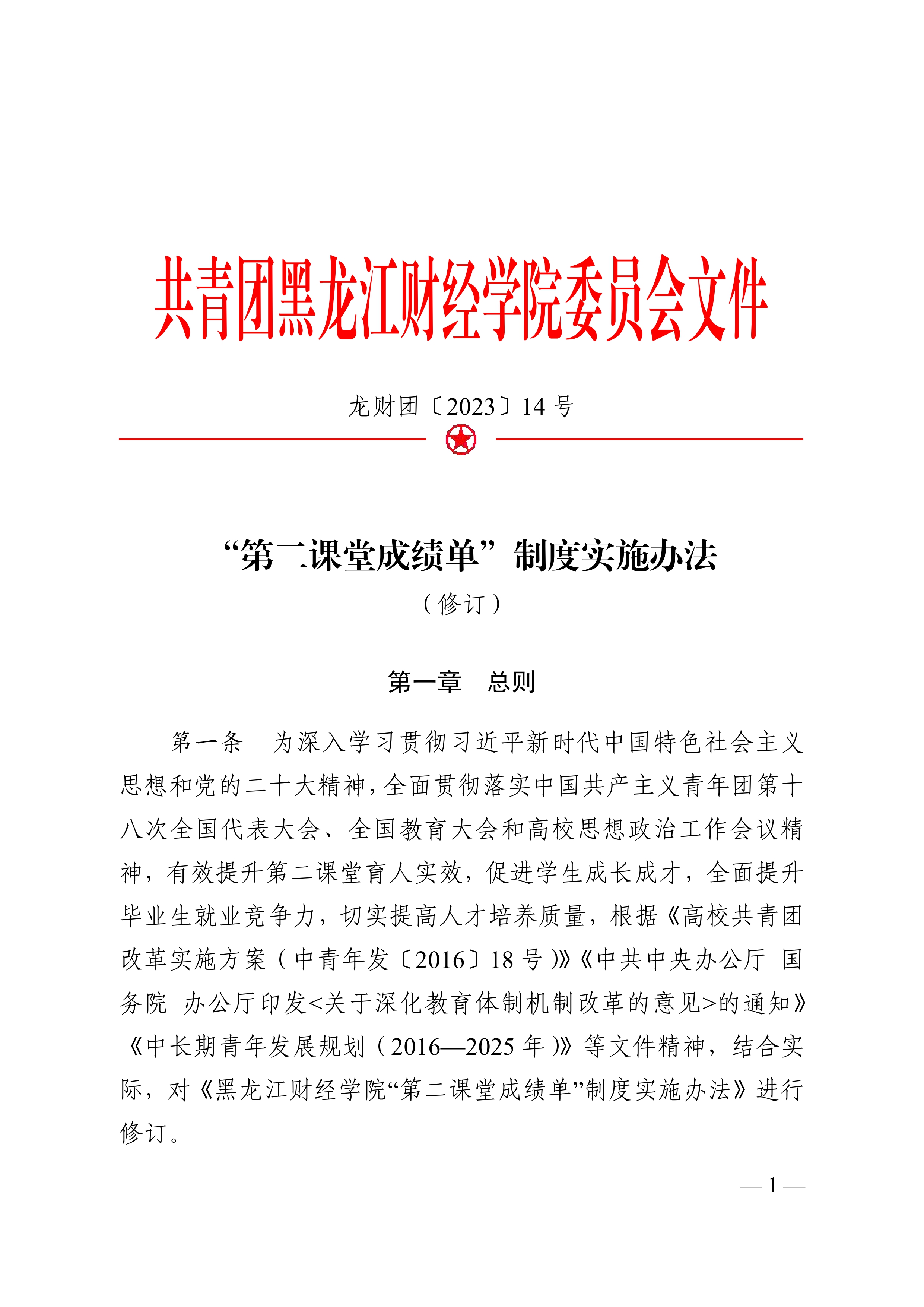 龙财团〔2023〕14号--黑龙江财经学院“第二课堂成绩单”制度实施办法(修订).doc
