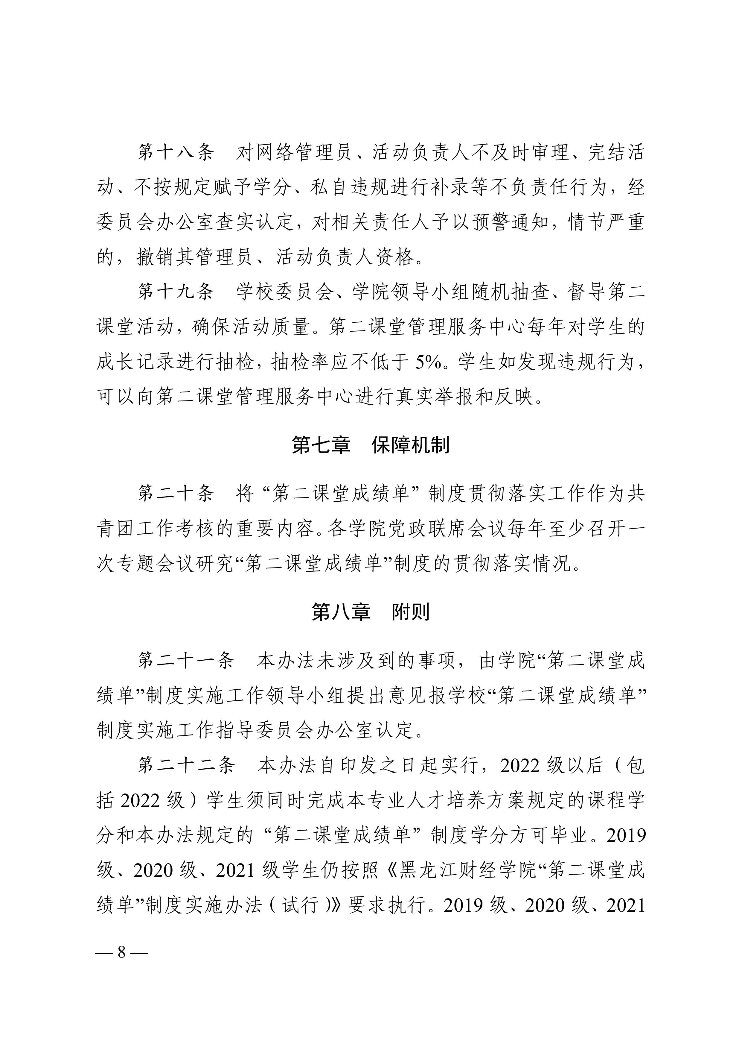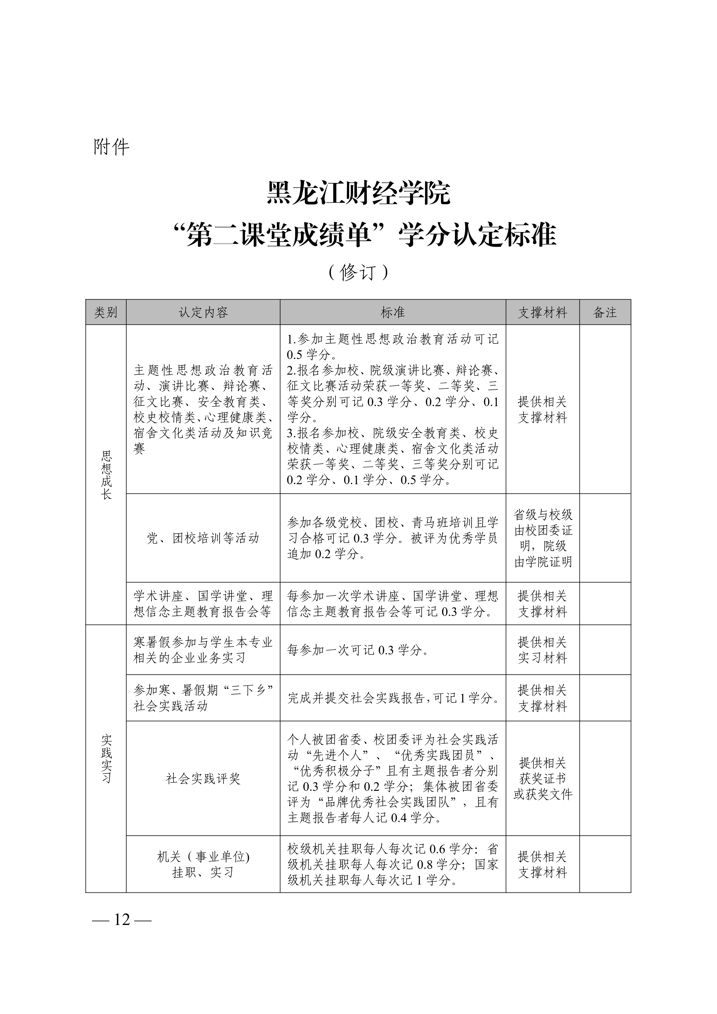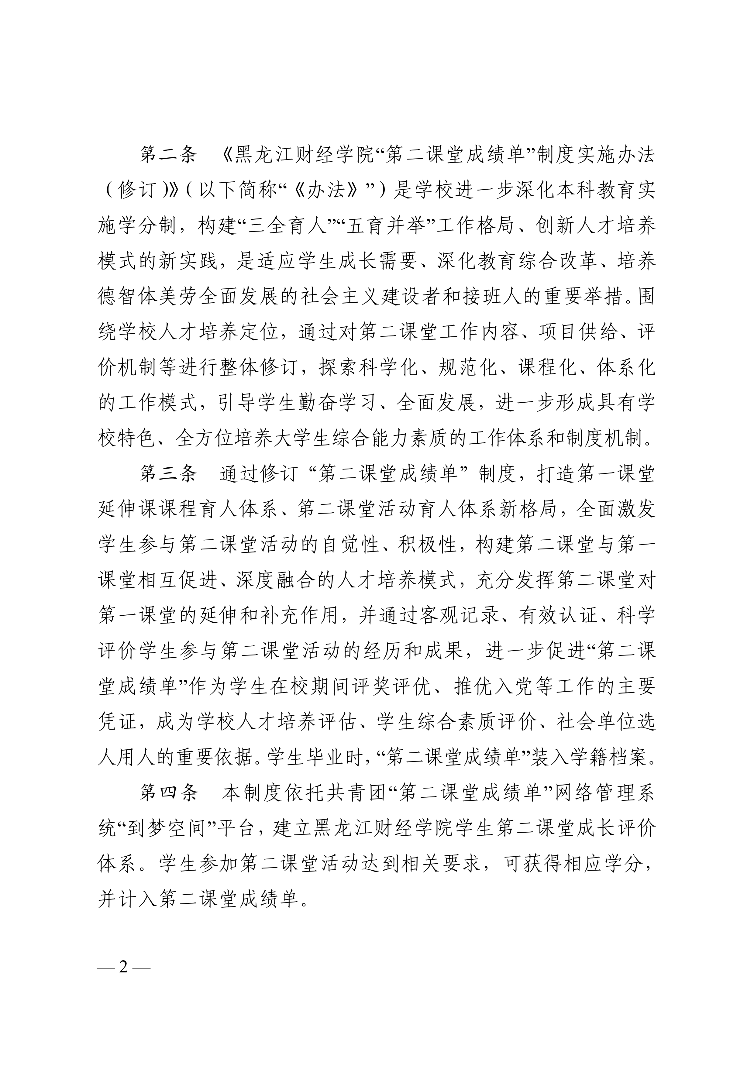 黑龙江财经学院“第二课堂成绩单”制度实施办法(修订)