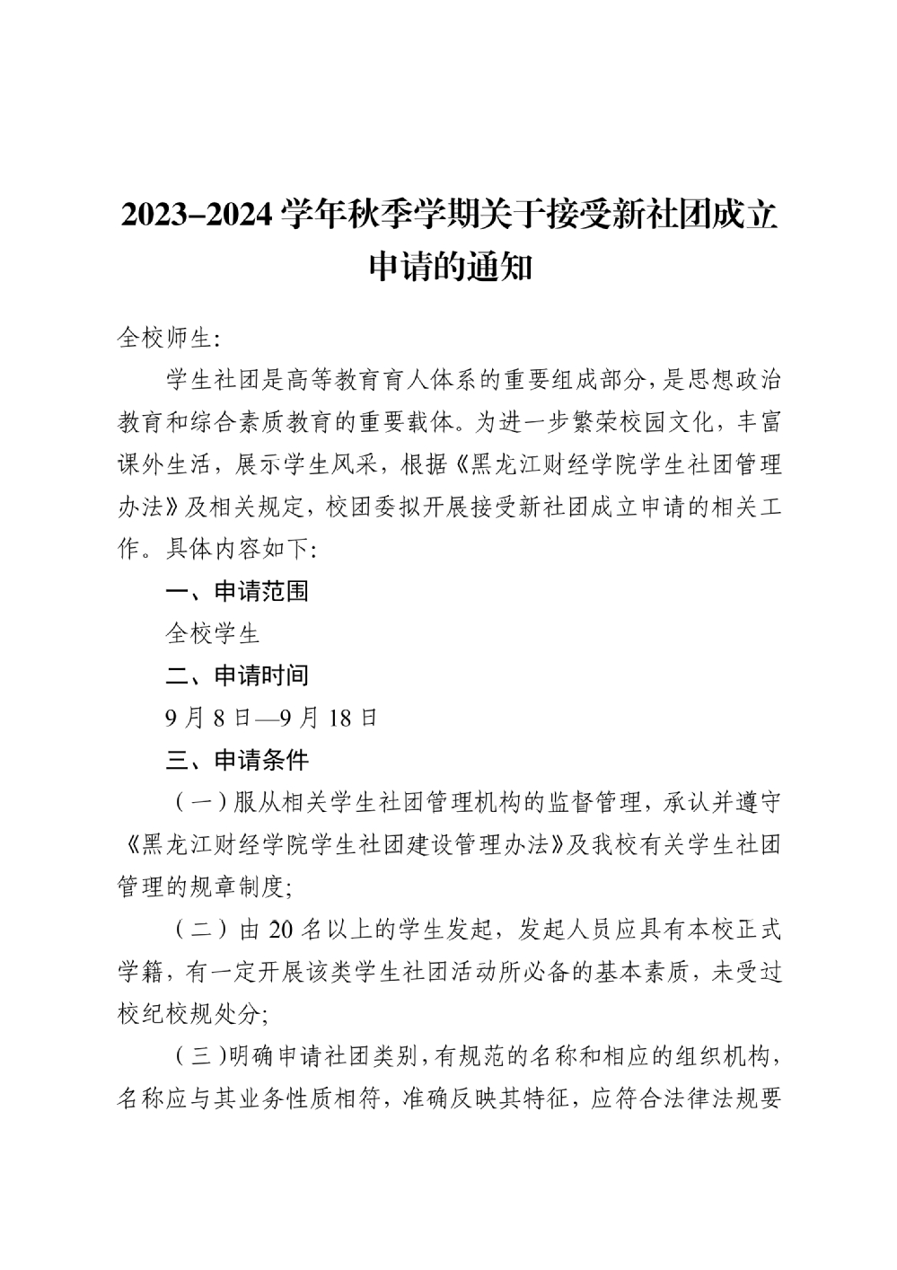 附件5:2023-2024学年秋季学期关于接受新社团成立申请的通知.doc
