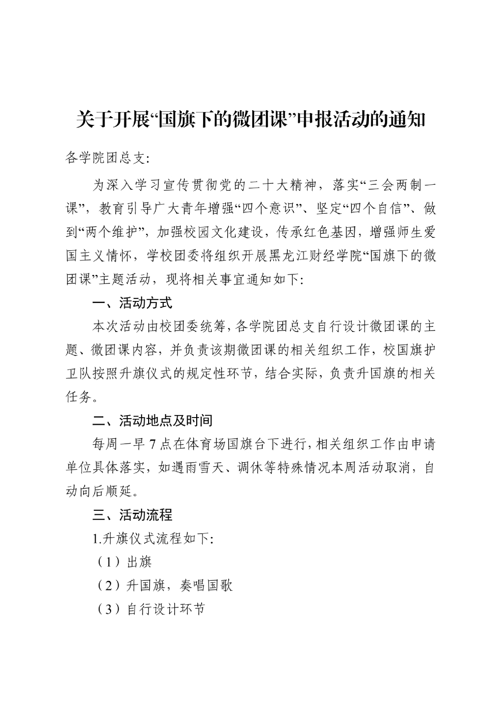 关于开展“国旗下的微团课”申报活动的通知.doc