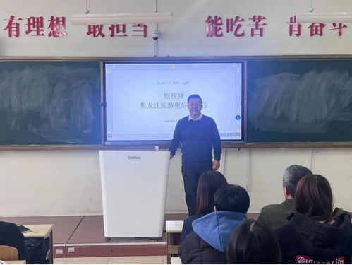 讲座以黑龙江旅游资源丰富,却尚待开发为切入点,通过视频的重要性、设备的重要性、传播的重要性等方面,结合案例及其本人的丰富经历,为同学们和老师们勾勒了黑龙江旅游的美好前景,并为同学们今后的短视频拍摄提供了研究方向。