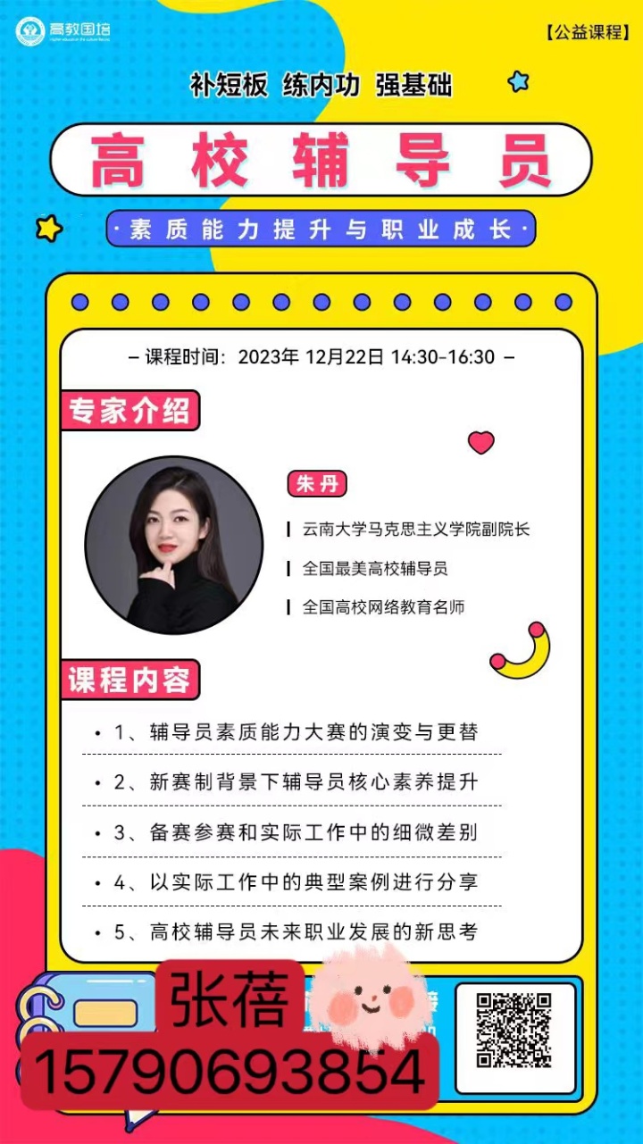 为深入学习贯彻习近平总书记关于教育工作的重要论述和指示精神,落实《普通高等学校辅导员队伍建设规定》《全面加强和改进新时代学生心理健康工作专项行动计划(2023—2025年)》等相关文件精神,提升高校辅导员的理论水平、职业能力和专业素养,加强辅导员队伍建设,提高辅导员谈心谈话的水平和质量,从而更好的提前备战第十届全国高校辅导员素质能力大赛,高教国培(北京)教育科技研究院将举办“高校辅导员素质能力提升与职业成长公益直播”。