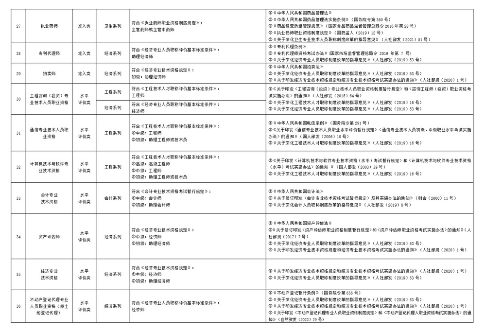 为贯彻落实省委、省政府新时代人才工作部署,进一步推动职业资格制度与职称制度有序链接,减少对专业技术人员的重复交叉评价,我们根据国家职业资格制度改革和深化职称制度改革相关政策规定,进一步规范了部分职业领域专业技术类职业资格与职称对应关系,现就有关事宜通知如下: