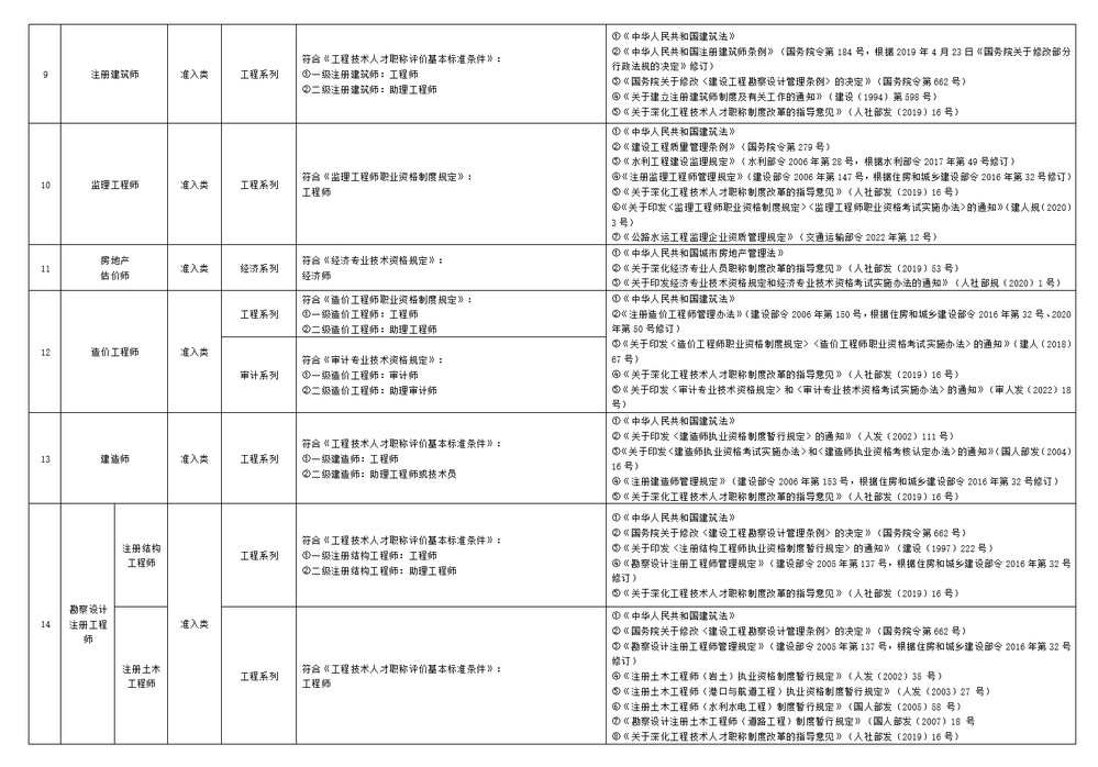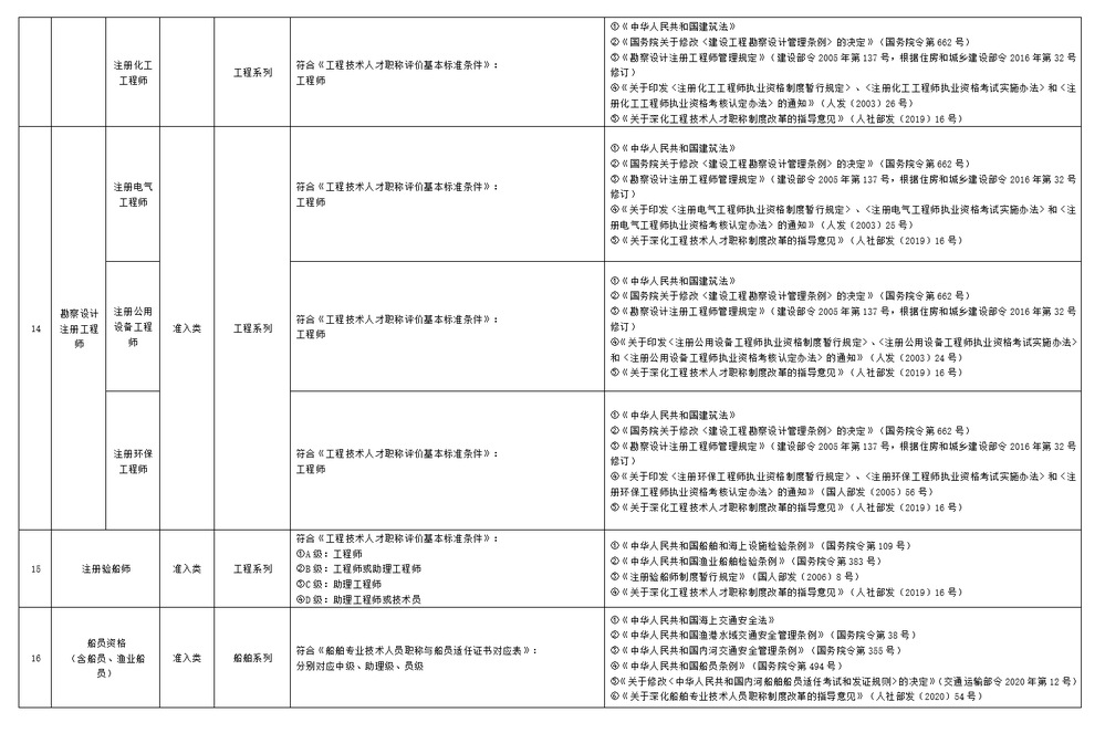 一、专业技术人员取得《部分专业技术类职业资格与职称对应认定目录(2023年版)》(附件)所列职业资格,即可认定其具备相应系列、层级的职称,用人单位可按管理权限及相关规定聘任相应专业技术职务,无需换发职称证书,专业技术人员可据此作为申报高一级职称的条件。