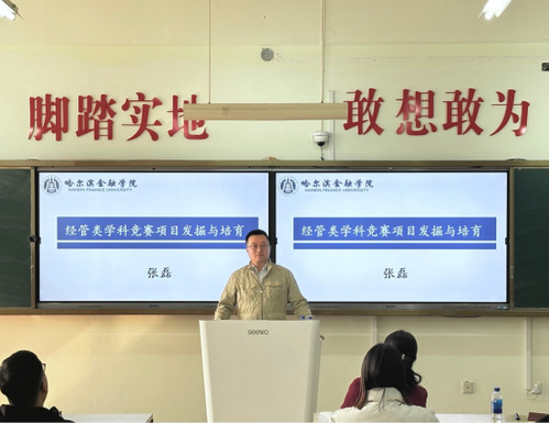 2024年4月10日13:30,哈尔滨金融学院创新创业副院长、校级教学名师张磊教授在尚学楼435教室以《经管类学科竞赛项目发掘与培育》为题进行了学术讲座。此次学术活动历时100分钟,由经济学院院长董雪梅主持,来自我校不同专业的140余名师生参加了此次学术报告活动。