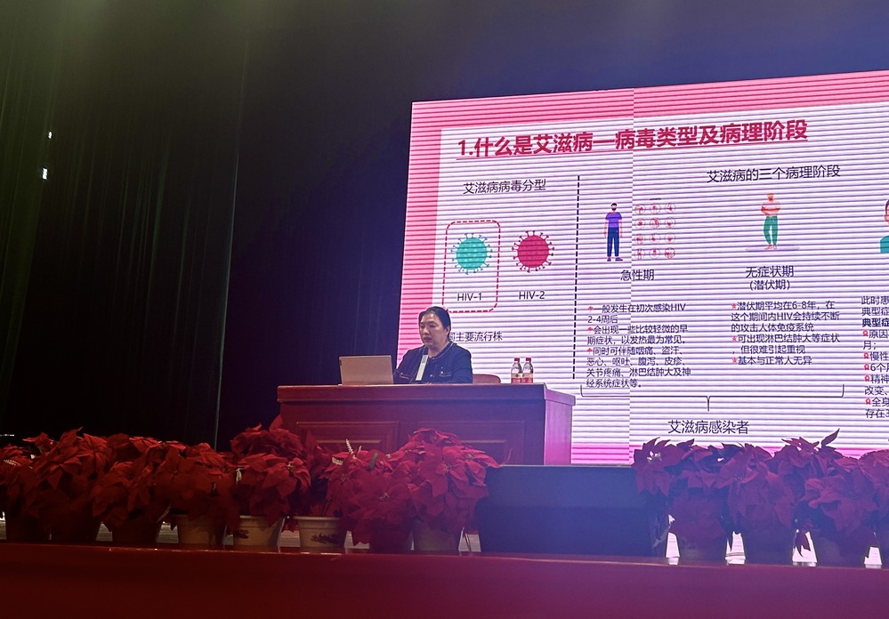 王蕊主任结合自身丰富的从医经验,通过“常见的几种传染病”、“什么是艾滋病”、“艾滋病的现状”、“艾滋病的特点”、“艾滋病的预防措施”、“预防保健知识”六大模块向在校学生阐明健康的真正含义,同时希望女大学生要更加注重自己的身体,懂得保护自己,年轻时重视自我保健,以后定会受益匪浅。