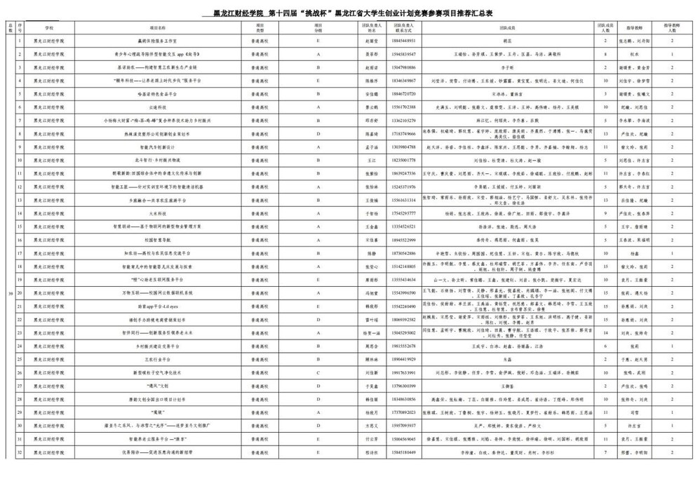 2024年校团委通过公开宣传、收集,以公平公正的原则最终推荐以下39件作品参加第十四届“挑战杯”黑龙江省大学生创业计划竞赛评审环节。现将作品名单公布如下。(作品表格)