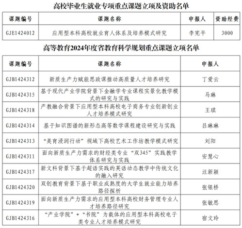 近日,黑龙江省教育科学规划领导小组公布了2024年度省教育科学规划课题立项的结果,我校获批重点课题共11项(其中包含高校毕业生就业专项重点课题1项)。现予以公布: