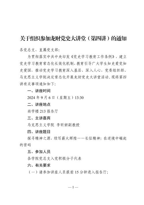 关于组织参加龙财党史大讲堂(第四讲)的通知