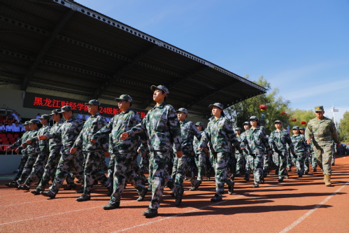 于长福发表了热情洋溢的讲话。他代表学校向2024级新生表示热烈欢迎,向在迎新及军训工作期间,付出辛勤汗水的承训部队官兵、广大教职员工表示衷心的感谢。他指出,同学们正身处在中华民族伟大复兴的时代潮流中,也处在科技革命和产业变革深入发展、人工智能蓬勃兴起的新时代。如何积极地拥抱新时代新技术,充分发挥自身优势,是我们面临的重大课题。希望同学们把握时代演进背景下不变的底层逻辑和根本规律,消解新技术、新环境、新目标所带来的忐忑与迷茫,在龙财校园里既充分享受青春的快乐,更收获真切的成长。他对2024级新生的学习和生活提出了殷切希望,一要志存高远,行君子之道。把握时代脉搏、厚植报国情怀,勇担时代使命。怀揣远大抱负,树立正确的历史观、民族观、国家观,在龙财这方成才沃土,浇灌理想之花持久盛放;二要溯求真知,养才子之学。珍惜宝贵时间,把握大好青春,变“知识传授”为“知识探究”,学会利用信息化手段来提升学习效果、构建知识体系。在龙财这方智慧沃土,护育思想果实累累满枝;三要清醒从容,怀赤子之心。锚定长远,步步为营的踏实努力,学好本专业知识,多去对接现实世界,参与社会实践、志愿服务等,让每一步旅程都充满美丽和芬芳,在龙财这方发展沃土,夯实生命根基坚实强韧。他强调,大学之门已经开启,期待同学们用学习探索充实大学生活,一步一个脚印书写多彩青春华章,为实现中华民族伟大复兴贡献力量。