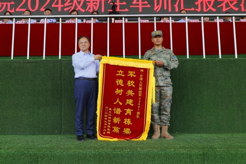 典礼上,于长福代表学校向空军哈尔滨飞行学院第二训练旅赠送了锦旗。副校长、军事教育训练团政委李宪平宣布了2024级新生歌曲、内务比赛评比结果。副校长、军事教育训练团团长庹莉宣布了2024级新生军训队列评比结果。