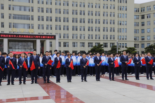 在全国上下喜迎中华人民共和国成立75周年之际,9月30日,我校在彩虹广场举行庆祝中华人民共和国成立75周年主题升旗仪式。党委书记王敏、校长于长福等党委班子成员、各二级学院党总支书记、团总支书记、全体辅导员、青马学员和学生代表共3000余人参加升旗仪式。仪式由团委书记李晓璇主持。