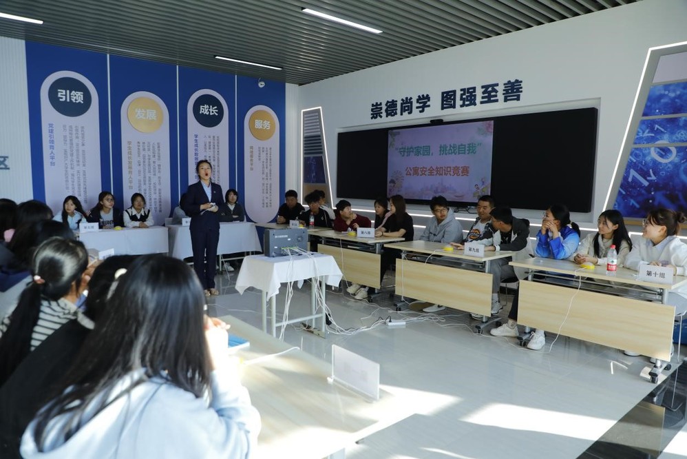 学生公寓是学生日常生活与学习的重要场所,是课堂之外对学生进行思想品德教育和安全教育的重要阵地。根椐学校2024年安全工作重点安排,为进一步将校园安全工作抓紧抓实抓到位,提高学生安全意识和自我保护能力,学生公寓管理中心于9月25日在“一站式”学生社区举办了“守护家园、挑战自我”的安全知识竞赛。学生处处长冯玉龙、副处长姜琨、付家杰出席活动,管理学院辅导员袁丽艳担任主持人,各公寓推荐的七个学院二十支代表队参加了比赛。