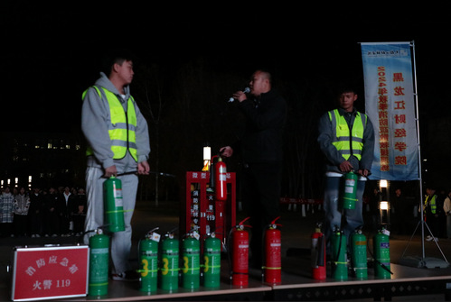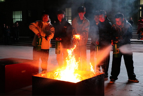 本次演练模拟夜间尚学楼突发火灾的情况下进行应急疏散逃生演练、消防技能等两部分组成。19:00随着总指挥副校长王玉峰下达的演练开始命令,演练正式开始。工作人员布置火场烟雾,鸣响火警警报。学校相关部门立即启动应急处置预案。在尚学楼上自习的同学在各二级学院辅导员与疏导员的指导下捂住口鼻、弯腰低头、小步快走,根据现场疏散标志,快速撤离火灾现场,有序前往安全区域,在短时间内抵达星辉广场空旷地带。整个演练过程以现场“对话式”模拟应急响应,做到措施有力,指挥高效,演练场景真实、效果突出。