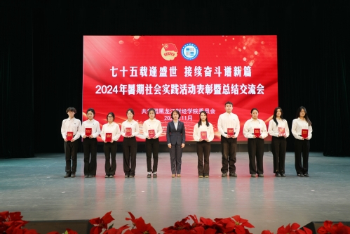 会上,李晓璇宣读了《关于表彰黑龙江财经学院2024年暑期社会实践团体和个人的决定》。与会领导为荣获2024年暑期社会实践十佳社会实践团队、优秀指导教师、学生优秀个人颁发证书。十佳社会实践团队指导教师分别作交流发言,分享了社会实践经验做法和学习收获。