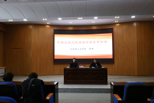 任老师以《中国式现代化进程中的青年担当》为题,从探索中国式现代化道路是中国共产党领导人民接续奋斗的追求、广大青年是探索中国式现代化历史进程中的先锋力量、青春助力中国式现代化三个方面,深刻阐述了青年应该如何担负起新时代的青春责任。她强调,青年学生要自觉用习近平新时代中国特色社会主义思想武装自己,用新时代十年的伟大成就鼓舞自己,用实现第二个百年奋斗目标的宏伟蓝图激励自己,深刻领悟“两个确立”的决定性意义,增强“四个意识”、坚定“四个自信”、做到“两个维护”,践行社会主义核心价值观,为全面建设社会主义现代化国家、全面推进中华民族伟大复兴而团结奋斗。