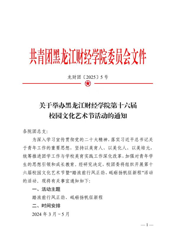 关于举办黑龙江财经学院第十六届校园文化艺术节活动的通知