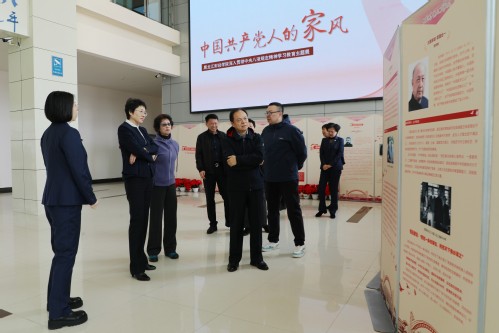 按照深入贯彻中央八项规定精神学习教育读书班日程安排,4月7日,我校在尚学楼阳光大厅举办“中国共产党人的家风”展,党委书记王敏、校长于长福等领导班子成员参观了展览,现场接受党性教育。