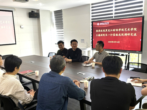 4月16日,王巍一行来到福州师范大学美术学院,座谈会上,副院长王英详细介绍了福州师范大学美术学院本科人才培养改革总体情况,指出,近年来学院紧扣“新文科”建设要求,系统推进“以学生发展为中心”的课程体系重构,着力破解本科生学习时间紧、实践能力弱的突出问题。王巍介绍了黑龙江财经学院基本情况,重点对艺术学院学科专业建设、人才培养方案的修订、课程建设以及产教融合等方面进行详细介绍。他指出,应用型本科院校的实践教学是人才培养体系的重要组成部分,产教融合校企合作是实践教学质量提升的重要路径。他介绍了文化创意产业学院在非遗文化传承和产业学院建设等方面的建设经验。随后针对专业课程改革核心议题,与会教师展开深入研讨。双方一致表示,将建立常态化交流机制,共同致力于培育适应文化产业高质量发展需求的艺术人才,推进艺术类本科教育高质量发展。
