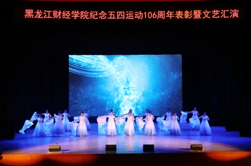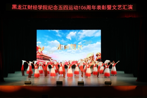文艺汇演在舞蹈《走向复兴》中拉开序幕,歌舞蹈《以人民的名义》,朗诵《太阳》,歌伴舞《落在生命里的光》《如愿》,舞台剧《破晓》,舞蹈《扬帆伟航》等节目依次上演,呈现了心怀志气、心存正气、心有底气的新时代青年风貌,充分展现了龙财青年牢记初心、不畏险阻、忘我奋斗,始终走在时代前沿,担负起祖国伟大复兴重任的精神面貌。