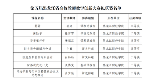 近日,第五届全国高校教师教学创新大赛(黑龙江赛区)圆满落下帷幕,我校教师团队以精湛的教学水平、创新的教学理念和扎实的育人成效,在激烈的竞争中喜获佳绩,共斩获二等奖2项、三等奖5项。
