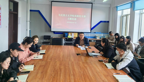 进一步强化教师队伍思想政治素质和职业道德水平,5月7日,马克思主义学院直属党支部开展师德师风建设专题党课,支部书记冯玉龙主持会议,全体党员教师参加。
